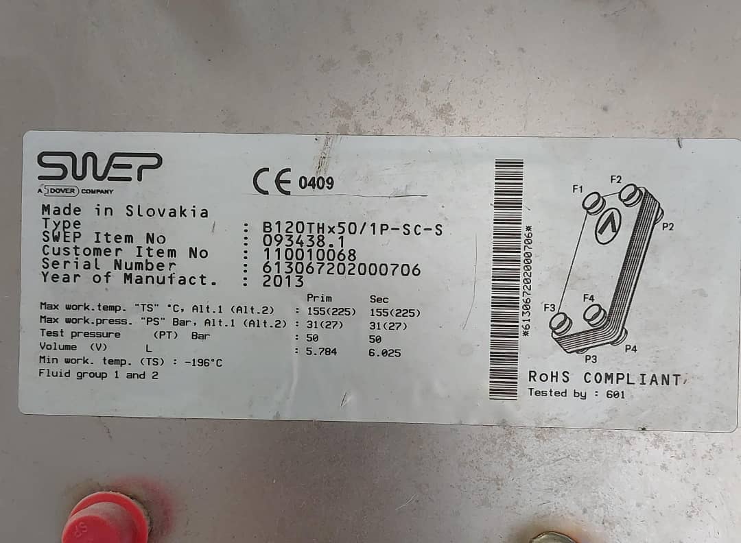 مبدل حرارتی صفحهای مدل SWEP B120THx50/1P‑SC‑S از نوع Brazed Plate Heat Exchanger با ظرفیت بالا برای انتقال حرارت در سیستمهای برودتی و تهویه مطبوع صنعتی طراحی شده است.ساختار فشرده، فشار کاری ۳۱ بار و محدوده دمایی −۱۹۶ تا ۱۵۵ درجه سانتیگراد آن را برای استفاده در سیکلهای چگالش و تبخیر مبردها کاملاً مناسب میسازد.جنس فولاد ضد زنگ با لحیمکاری مسی، دوام بالا و مقاومت در برابر فشار و خوردگی را تضمین میکند.