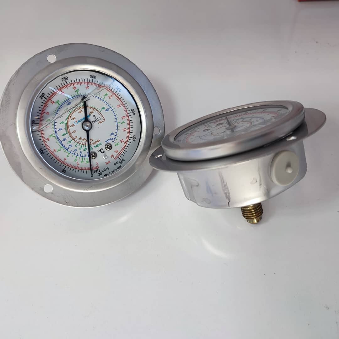 گیج ترکیبی مناسب برای اندازه گیری فشار و دما در مدارهای تبریدی. کنترل و اندازه گیری هم زمان فشار و دما در سیستم های برودتی نظیر کمپرسورها ،چیلرها و کندانسورها