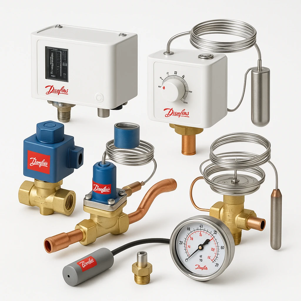 محصولات Danfoss در حوزهٔ سیستمهای کنترل فشار، دمای برودتی و تنظیم جریان مبرد، از معتبرترین برندهای جهان محسوب میشوند.